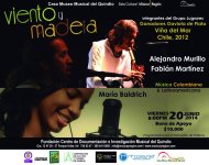 ALEJANDRO MURILLO. Maestro en ejecución instrumental. Desde muy pequeño muestra su interés por aprender a interpretar instrumentos musicales, siendo sus padres los primeros en apoyar esta curiosidad que posteriormente se convertiría en una pasión. Realiza sus estudios de primaria en el colegio San Antonio y Jorge Isaac de la ciudad de Armenia donde comienza a destacarse en la parte artística interpretando el piano en los diferentes eventos del colegio, posteriormente ingresa al colegio Inem “Jose Celestino Mutis” en el que aprende a interpretar la flauta dulce y comienza a conocer los aspectos básicos de la guitarra. Se gradúa como bachiller industrial modalidad construcciones civiles en el año de 1995.